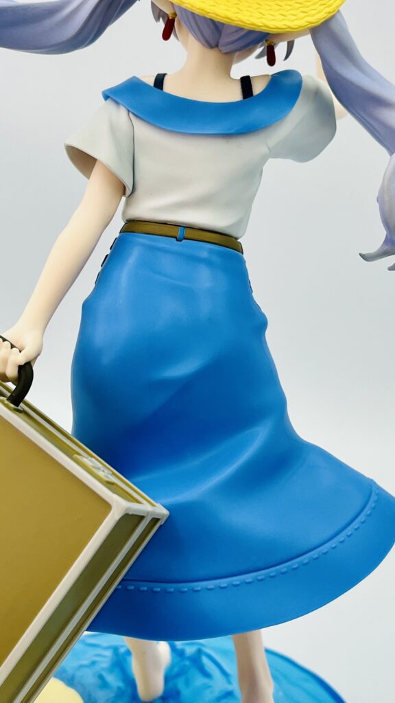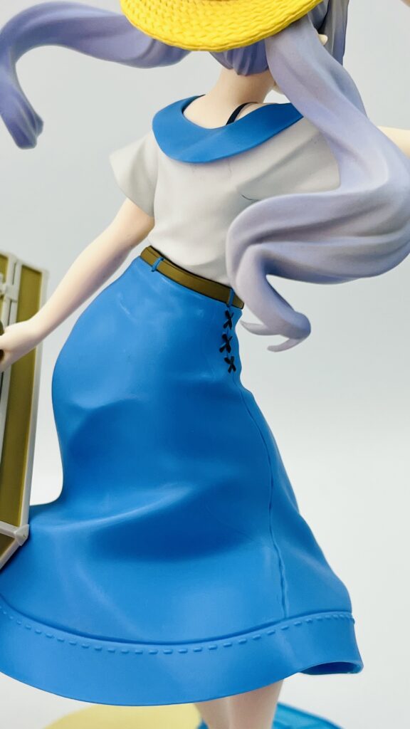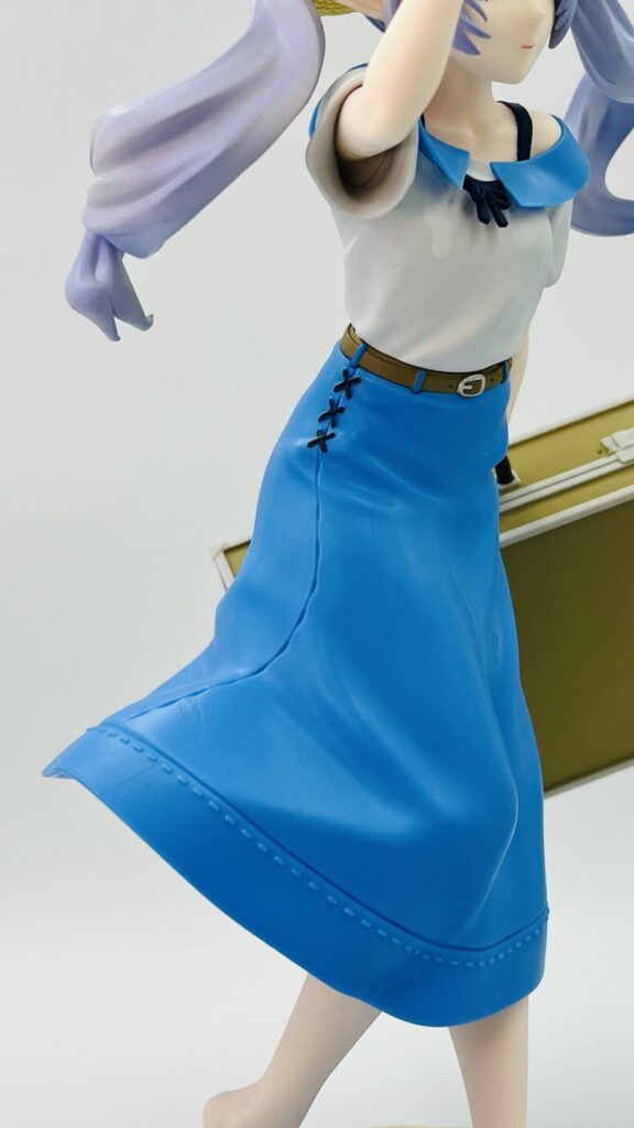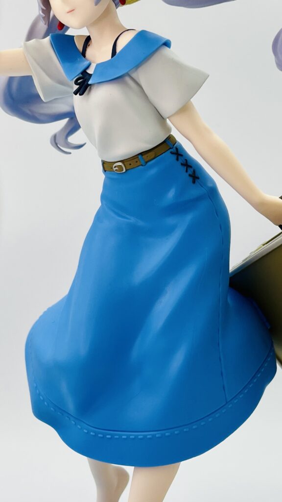 青いロングスカートはステッチなど造形が細かいです!